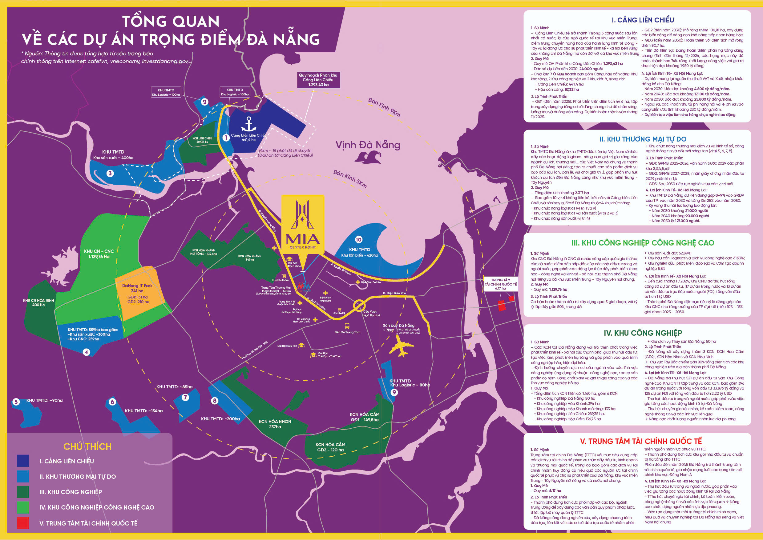 Đà Nẵng hiện đang sở hữu nền tảng hạ tầng vượt trội với 2 sân bay quốc tế, 3 cảng biển lớn, ga đường sắt trọng điểm, Khu Công nghệ cao và hệ thống logistics kết nối toàn khu vực miền Trung. Đây chính là những yếu tố then chốt để thành phố trở thành “hub” giao thương, tài chính và đổi mới sáng tạo của Việt Nam. Với tầm nhìn đến năm 2045, Đà Nẵng hướng tới trở thành đô thị sinh thái và thông minh, trung tâm thương mại tự do, trung tâm tài chính quốc tế, trung tâm công nghiệp, logistics, khởi nghiệp đổi mới sáng tạo và là thành phố du lịch đáng sống, đẳng cấp khu vực Châu Á.