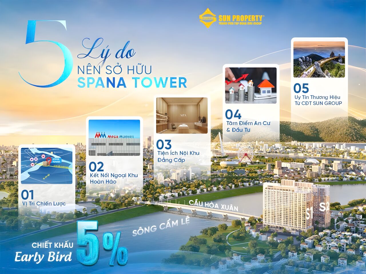 Sở hữu vị trí hiếm có tại khu Nam Đà Nẵng – nơi hạ tầng đang bứt phá mạnh mẽ, căn hộ Spana Tower không chỉ đáp ứng nhu cầu an cư cao cấp mà còn là tài sản đầu tư hấp dẫn. Việc Sun Group phát triển dự án đầu tiên tại khu vực này được xem là cú hích lớn, mở ra cơ hội gia tăng giá trị bất động sản trong dài hạn.