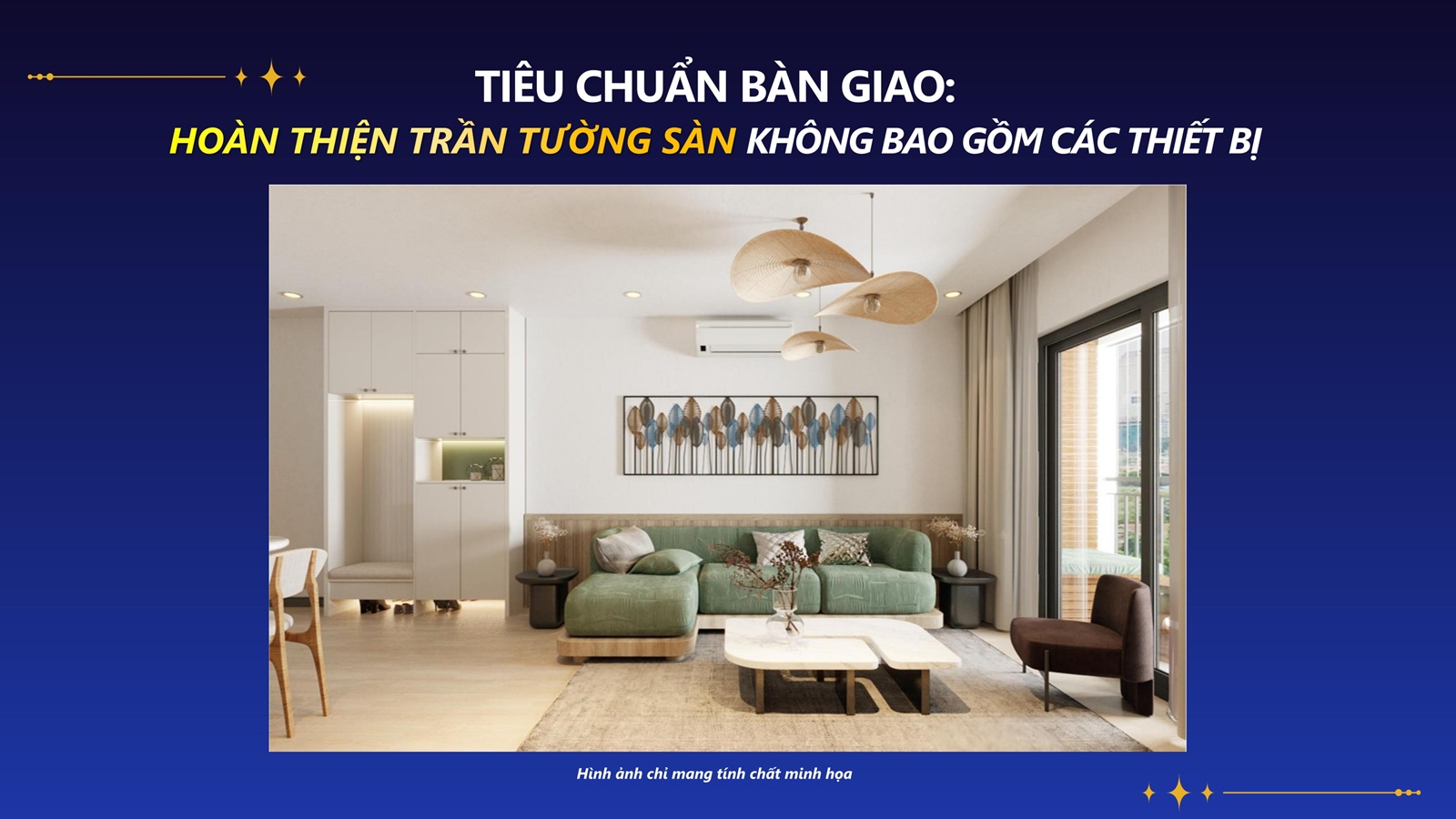 Tiêu chuẩn bàn giao: Hoàn thiện trần, tường, sàn (không bao gồm thiết bị nội thất)