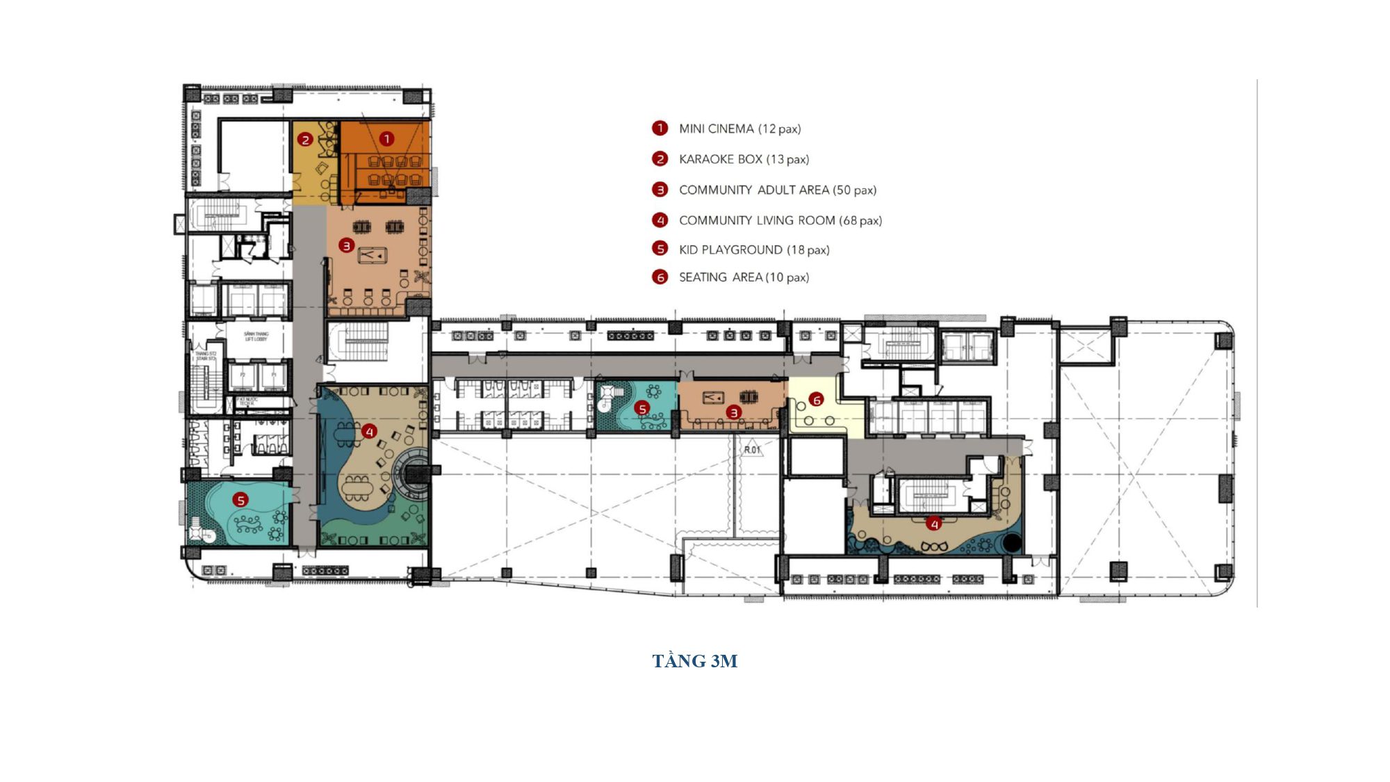 - Tầng 3: Khu DV chung, nhà hàng, phòng họp đa năng (cao 4,2m)